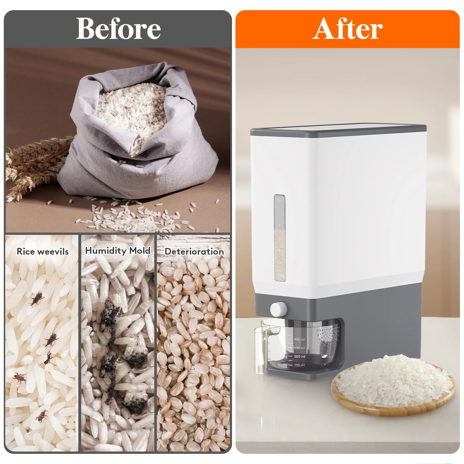 ¡Organiza tu cocina hoy mismo! Con nuestro dispensador de arroz de 22 libras, tendrás todo bajo control.